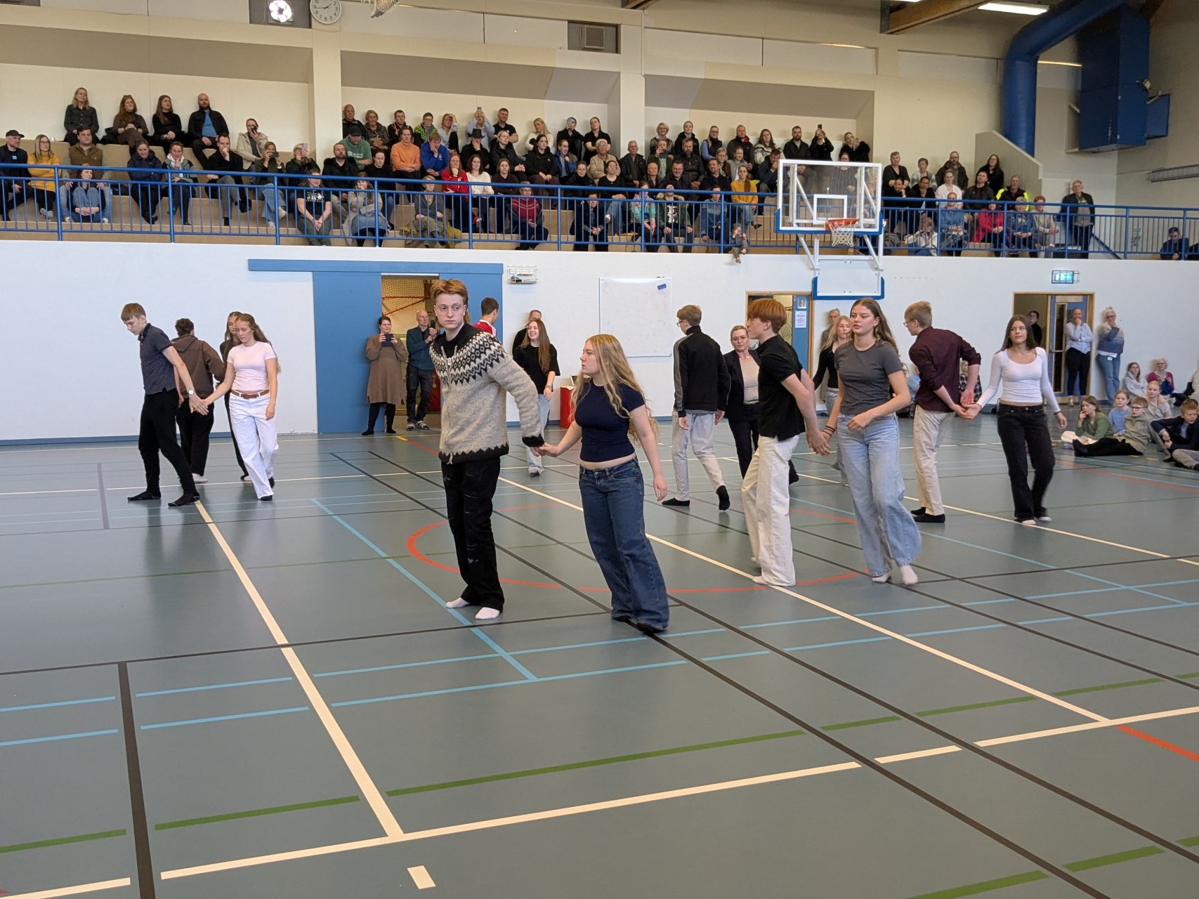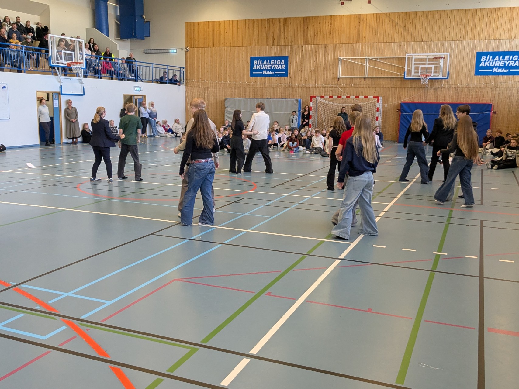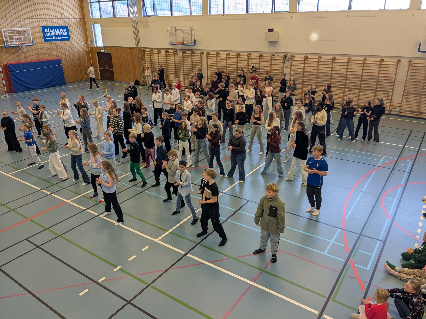 Í dag var haldin danssýning í íþróttahúsi Hrafnagilsskóla. Nemendur 5.-10. bekkjar sýndu hvað þeir hafa lært undanfarnar vikur undir leiðsögn Elínar Halldórsdóttur danskennara. Nemendur sýndu ýmsa dansa sem þeir hafa æft síðustu vikur og stóðu sig með sóma. Eins og alltaf mættu fjölmargir áhorfendur til að fylgjast með sýningunni og styðja við nemendur.