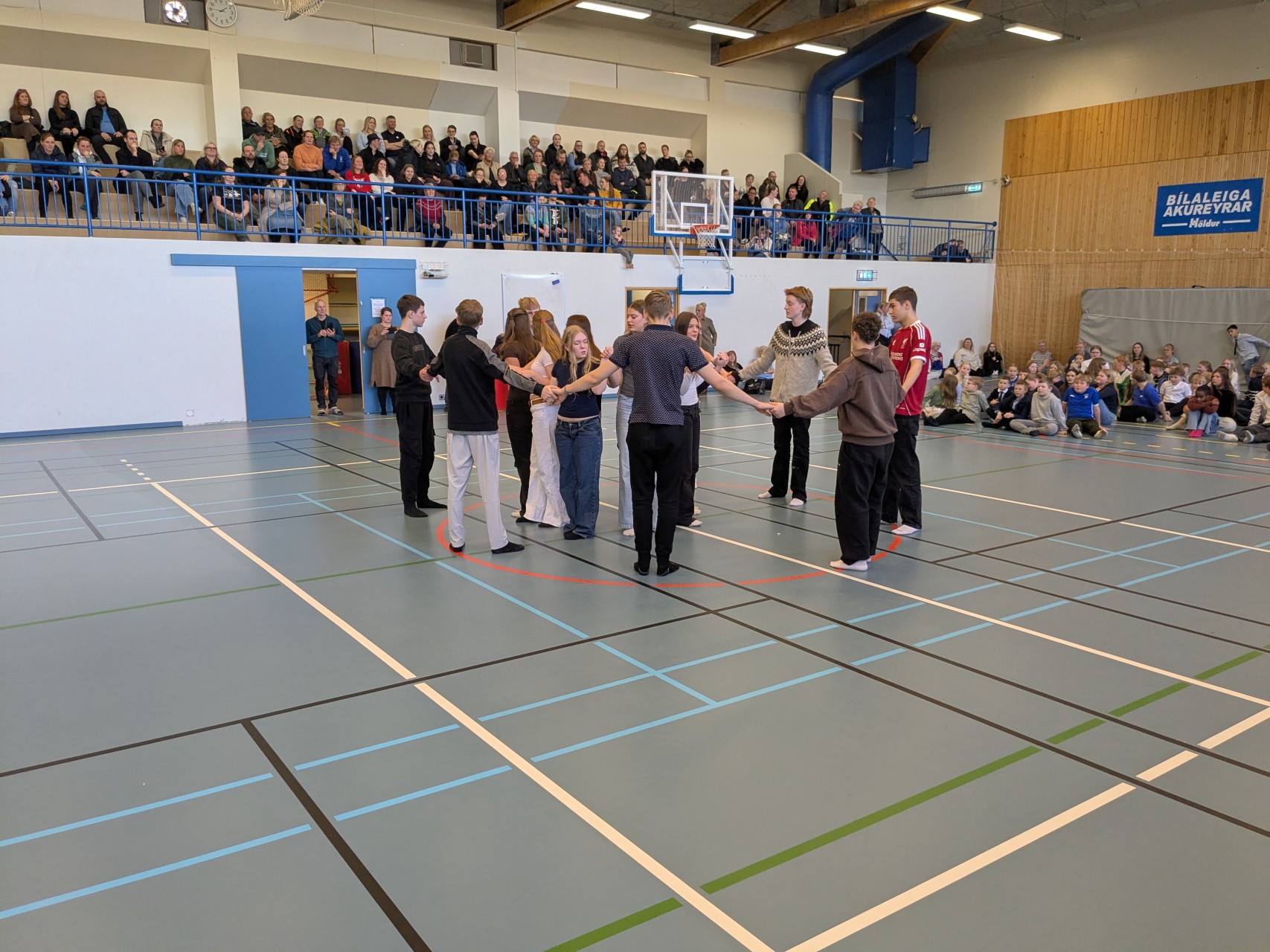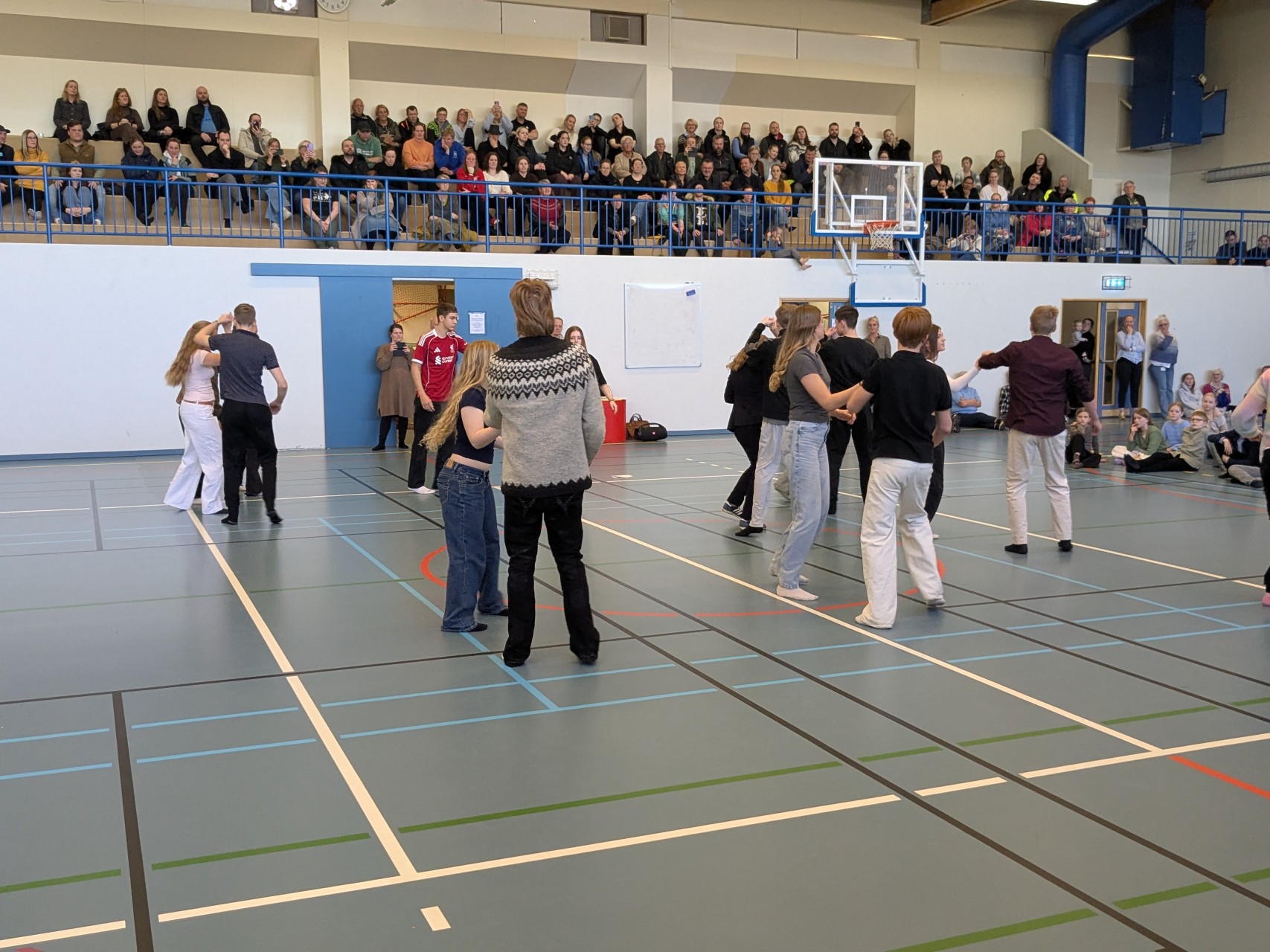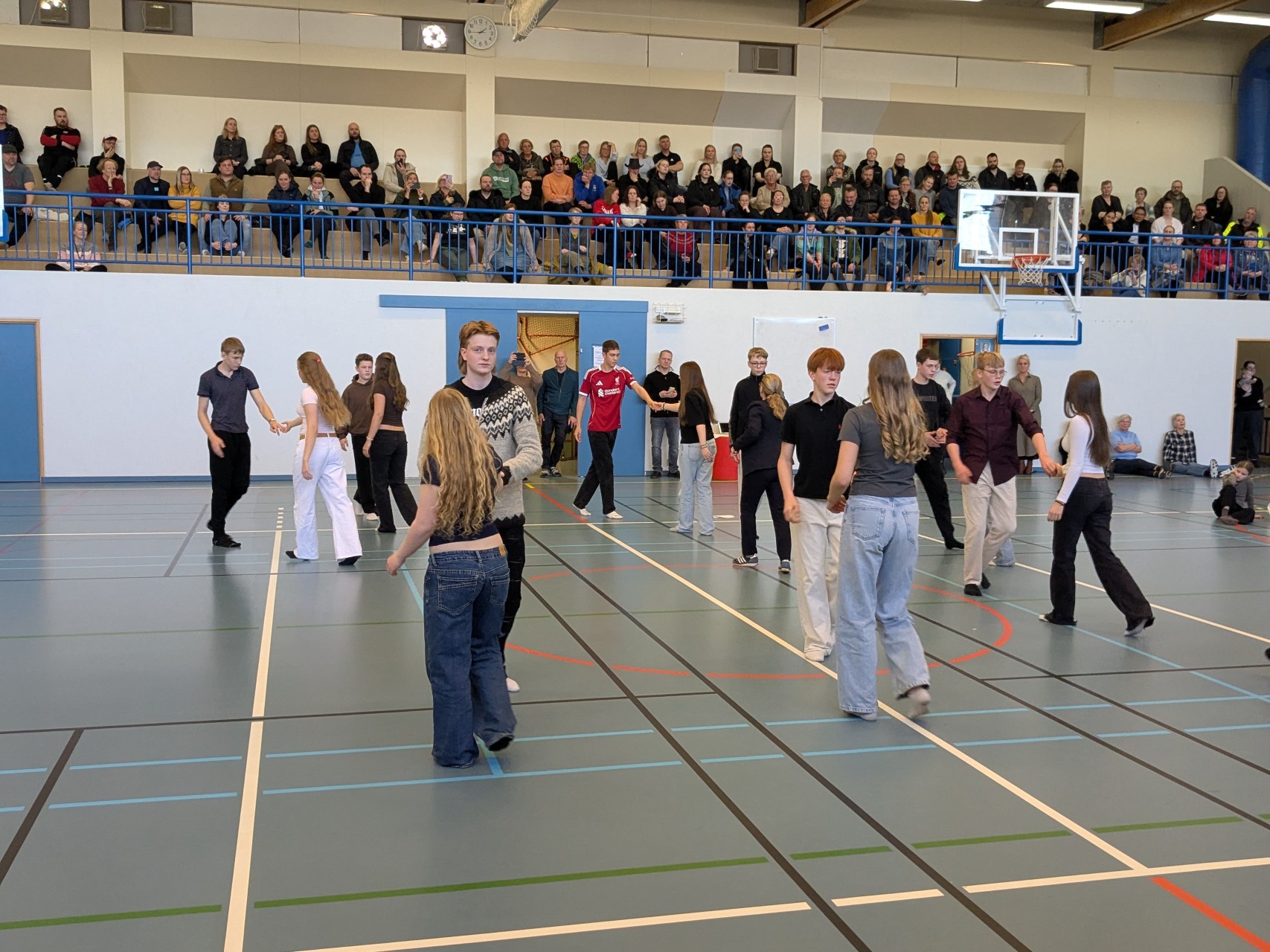 Í dag var haldin danssýning í íþróttahúsi Hrafnagilsskóla. Nemendur 5.-10. bekkjar sýndu hvað þeir hafa lært undanfarnar vikur undir leiðsögn Elínar Halldórsdóttur danskennara. Nemendur sýndu ýmsa dansa sem þeir hafa æft síðustu vikur og stóðu sig með sóma. Eins og alltaf mættu fjölmargir áhorfendur til að fylgjast með sýningunni og styðja við nemendur.